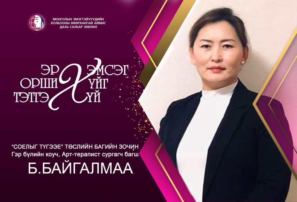 Өөртөө дурла, өөрийгөө хөгжүүл, өөрийгөө хүндэл. Өөрийгөө хайрлаж байж бусдыг буюу эр нөхөр, үр хүүхдээ хайрлаж чадна. Эмэгтэйчүүд өөрийгөө гаргуунд нь хаяад гэр бүлийнхээ төлөө үр хүүхэд ач гучийнхаа төлөө гээд ачаатай тэмээ шиг зүтгээд байдаг. Гэтэл нэг мэдсэн хэтэрхий оройтсон, өвдсөн, өвчин хүндэрсэн ч тохиолдол байх жишээ их байна. Тиймээс өөртөө цаг зав гаргаж өөрийгөө хөгжүүлж, тасралтгүй суралцаж, дуртай сонирхолтой спортоор хичээллэж, найз бүсгүйчүүдтэйгээ уулзаж, дэлгүүр хэсэж, дуртай бүх л зүйлээ хийх боломжийг бүрдүүлэх, өөрт таарсан бизнес эрхлэн дур зоргоороо амьдрах хэрэгтэй байна.