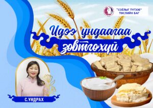Өглөөний мэнд : Аймгийн Эмэгтэйчүүдийн зөвлөлийн “СОЁЛЫГ ТҮГЭЭЕ” төслийн 8 дугаар сарын аян “ИДЭЭ УНДААГАА ЗӨВТГӨХҮЙ” сэдвээр эхэлж байна. Идээ ундааны шим тэжээл, чанар, аюулгүй байдлын